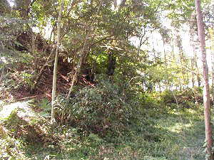 城山の東側下の堀の痕跡。しかし、畑にするために大分土を入れられてしまっている。かなり浅くなっているので、いわれなければ気がつかないであろう。
