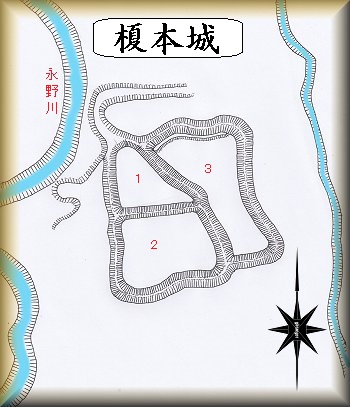 鳥瞰図は南側から見たものである。旧状が分からないので、とりあえず「栃木県の中世城館跡」の縄張り図を元にして描き起こしてみたが、実際にこの通りであったのかどうかはよく分からない。