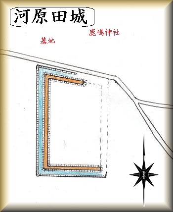 河原田城は、河原田町の鹿嶋神社の南側一帯にあった。(有)タテ製作所やエスティーキコウ(株)と道路を挟んで南側の水田地帯である。