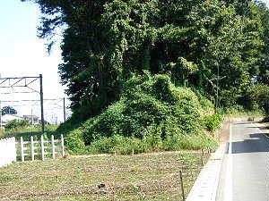 (あ)の辺りから城山(土塁)を見た所。すぐ脇を線路がかすめている。