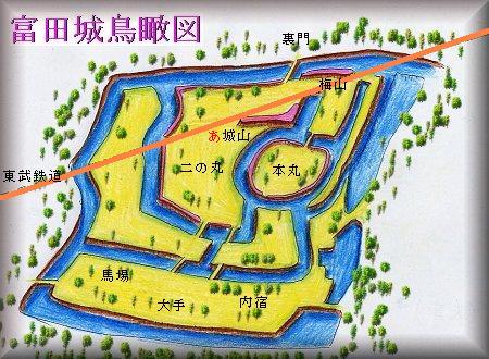 富田城は、嘉吉元年(1441)、皆川氏の一族、富田左衛門尉成忠によって築かれた。弘治3年(1557)には皆川俊宗が城を占拠し、隠居城としたという。また永禄年間には富田忠之がいたという説もある。小山氏に備えるための重要な拠点であったのであろう。