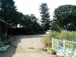 本丸内部の様子。保育園のグランドとなっている。郭内は50m×60mほどである。この日は土曜日で保育園は休みのようであったが、平日にカメラをもってうろついていたら、不審者扱いされてしまうかもしれない。