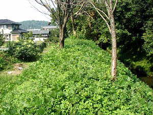 城の北側の外れに、堤防が盛り上がって巨大な土塁のようになっている部分がある。近代の工事で生じたものでないかと思うのであるが、この高い堤防そのものが江戸時代には存在していたということであるから、もしかすると城と何らかの関係があるものなのかもしれない。