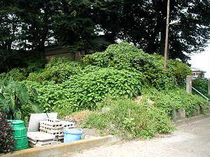 阿曽沼城は、浅沼町の浅沼八幡宮の境内にある。単郭方形の平城であった。しかし宅地化のために遺構のほとんどは失われ、神社の東側の奥に写真の堀と土塁がかろうじて残っているにすぎない。深さ2m、幅5mほどで、60mぶんくらいだけが残存部分である。
