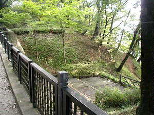 本丸土塁と堀の南西部分。この辺りはとても城らしい、いい雰囲気を残している。この南側の部分の土塁が最も高くなっているが、この方向に正面虎口が設けられていたのであろう。