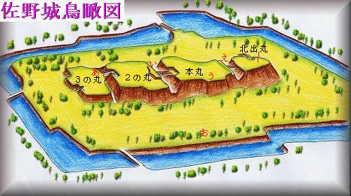 *現地案内板を参考にして、堀田佐野城の復元鳥瞰図を描いてみた。