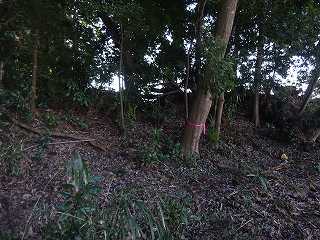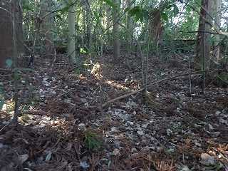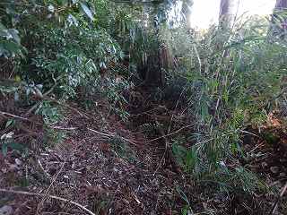 | Bの堀のさらに内側にある浅い窪み。堀跡なのかどうかわからない。 | Bの堀跡だが、ヤブがひどい。 |