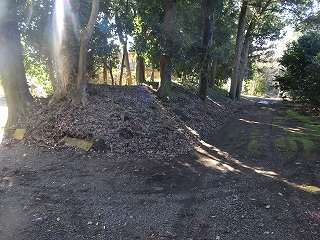 | 北側の虎口と土橋。 | 虎口東側の城塁と堀。 |