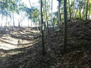 橋本城は下野市橋本530番地のお宅の辺りにあった。城内は山林化しており、また民家となっている個所では遺構が消失していると思われるが、あちこち歩いてみると、それなりに遺構らしきものが存在しているのが確認できる。