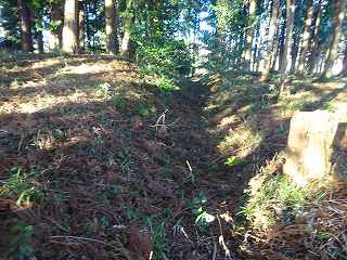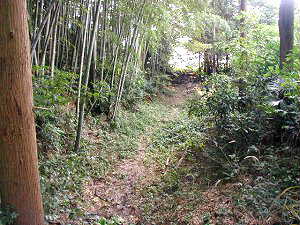 | 南側の墓地のところから城内を目指して進んで行く。 | 4郭南端部の堀切。 |