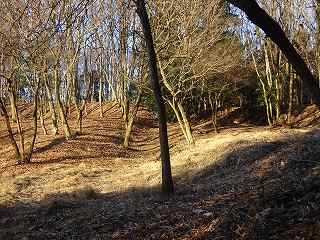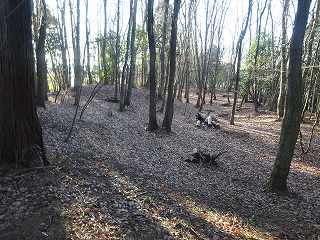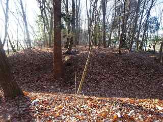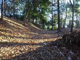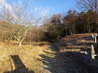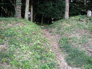 | 1郭の虎口。 | 4郭内部。古墳状の高まりがある。 |