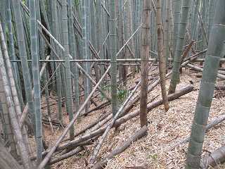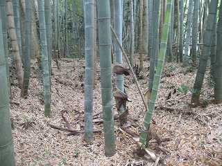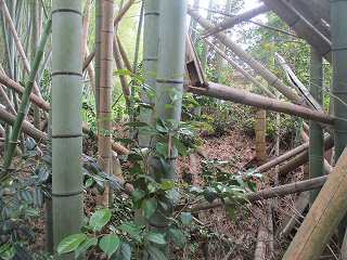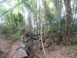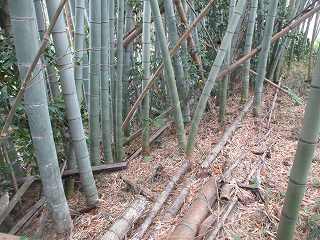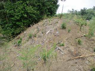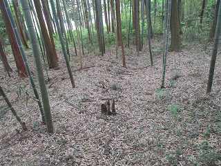 しかし、城址一帯には住宅地はない。土地造成をしたのはいいが、その後開発が頓挫してしまったのか、一帯は、一面の竹ヤブとなってしまっている。結局、城を破壊しただけで終わってしまったようだ。何のための開発だったのか・・・・。ただ、現在でも「売地」と書かれた看板が立てられていた。いったい買う人がいるのであろうか。