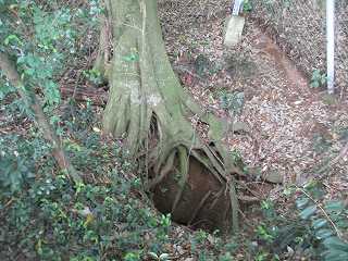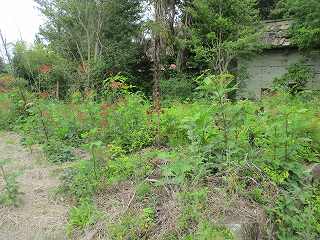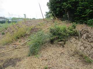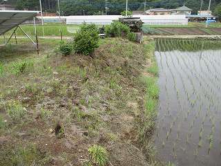 | 半田氏屋敷。 | 土塁。昭和40年代のマツダキャロルが埋もれていた・・・。 |