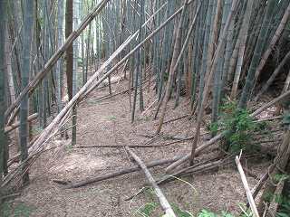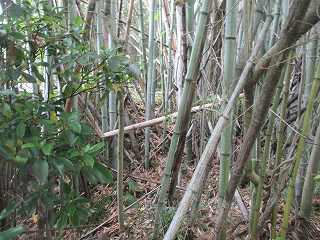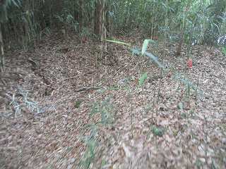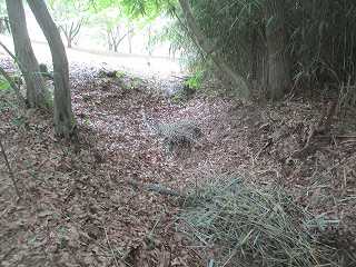 するとすぐに竹林の中に堀跡らしいものが見えてきた。