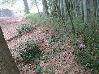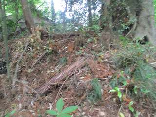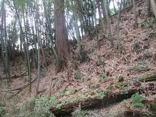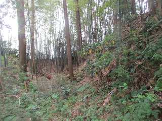 遺構の残存状況は断片的になってしまっているが、山林の中には所々に土塁や堀の名残と思われるものが残されている。
