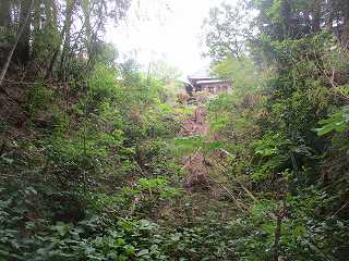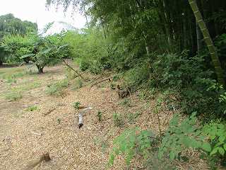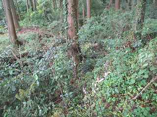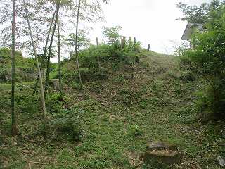 屋敷の背後には土塁があるが、崩されてしまっているようで、だいぶ低くなってしまっている。しかもヤブがひどい。