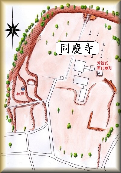 同慶寺は芳賀氏の菩提寺であり、芳賀氏歴代の墓が残されている。だけではなく、この寺院には城郭遺構の名残かと思われる遺構が各所に残されている。