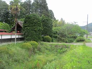 御屋敷の背後の方には土塁があり、その手前に氏神様が祭られている。