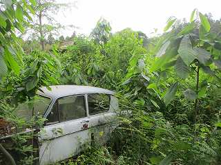 その下に昭和40年代のマツダキャロルの廃車が置かれていた。なんとも懐かしい!