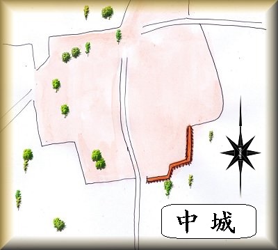 中城は能満寺の西方100mほどの所にある。辺りは一面の水田地帯で、その中の一軒のお宅が、城址の中心であったと考えられる。