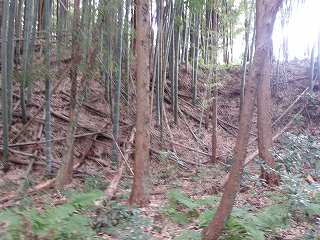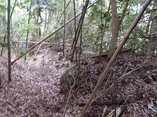 2郭の北側と西側には堀が掘られている。また、南側の斜面には畝状竪堀群が掘られている。と言っても規模はとても小さなものである。