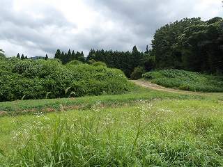 土橋から1郭方向。 | 1郭南側の城塁。 |