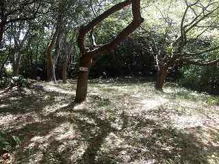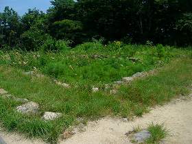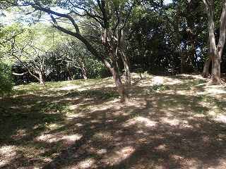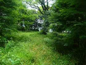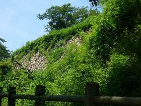 山麓本丸の土塁と堀。 | 西ノ丸。ここからは2棟の建物跡が検出されている。 |