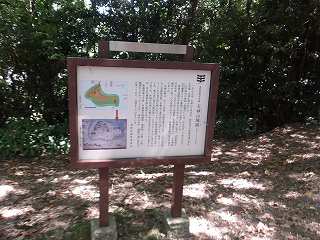 2郭の端には案内板が設置されており、またその上の一段高いところが1郭となっている。