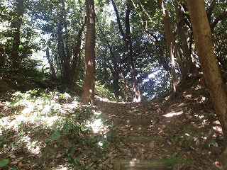 天球丸の脇辺りから山上の丸に登っていく道が付いている。比高200mほどもあり、かなり急峻であるが、直登に近い道のため、思ったよりも早く山頂まで到達することができる。この日は35度という真夏の暑さであったが、20分ほどで山頂に到達することができた。