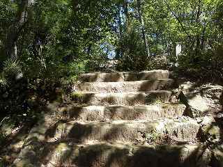 階段を登って行くと、まっすぐに進むルートと、右側に登って行く階段とに分岐するところがある。ここはまっすぐ登って行くのが正しいルートである。ただし、右側の階段を進んで行くと、途中に井戸跡のようなものを見ることができる。