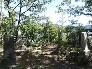 山稜上は数段に削平されており、そこは墓地になっていた。十字架の墓もあり、キリスト教の信者の方もいたようだ。