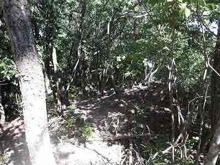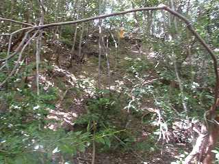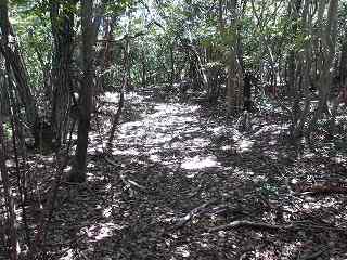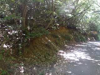 比高20mほどだからテキトーによじ登って行けばよい。ということで南西端の辺りからよじ登ってみたのだが、3まで行くと、ちゃんとした道が付けられているのに遭遇した。どうやら上の墓地に続く道が造成されているらしい。