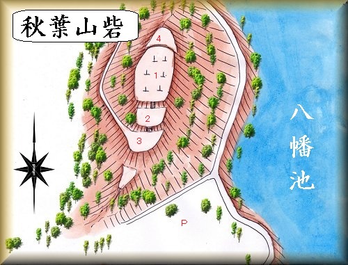 秋葉山砦は、八幡池の西側に聳えた比高20mほどの独立山稜に築かれている。羽柴方の砦として構築されたものだと言われている。