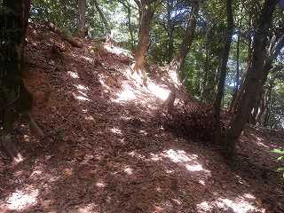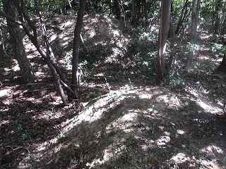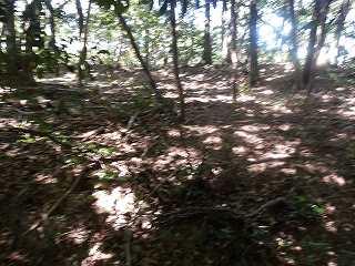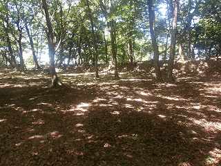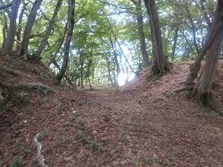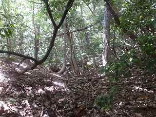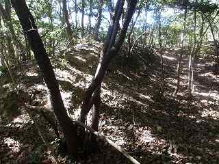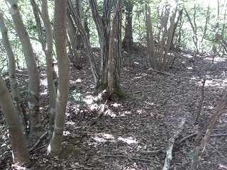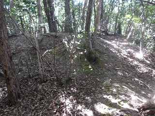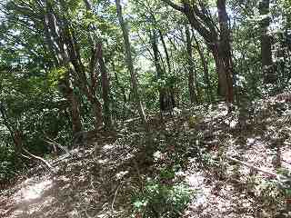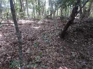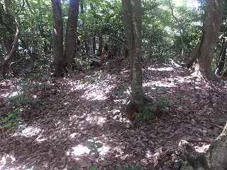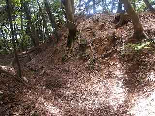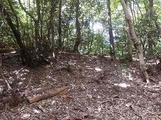 その先には緩やかな傾斜面があるが、平場となっている尾根もかなりの面積があり、この辺りにも多数の兵員を置くことができたと思われる。