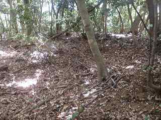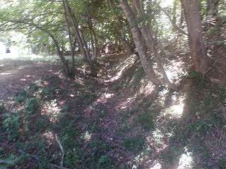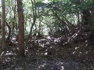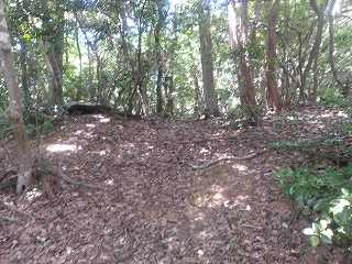 奥の郭。ここでいきなりイノシシが穴から飛び出してきたので驚いた。 | テラス状郭。 |