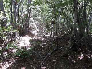 尾根道を進んで行く。道と言えるほどしっかりとしたものではないが、それほどヤブでもないので、歩きにくい箇所は少ない。