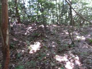 完龍院墓地から登り始めるとすぐに平場群が見えてくる。 | 段郭。 |