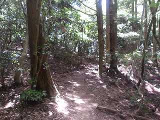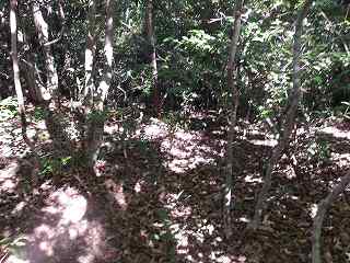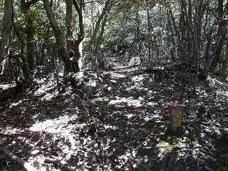道があるのかどうか分からなかったので、北西側下にある完龍院の墓地から尾根に取り付いてみた。尾根はヤブも少なく、比較的歩きやすい。急峻でもなかった。これなら夏場でも歩けそうである。ということで尾根道を進んで行く。