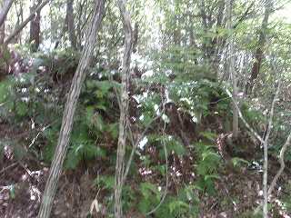 西端の砦の入口の段差。 | 1郭、低い土塁に囲まれた小規模な郭なのだが、写真ではよく分からない。 |