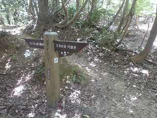 羽柴秀長陣からさらに久松山方向に降って行くと鞍部に到達する。ここは遊歩道が分岐する地点で、左右に降って行く通路と交差している。