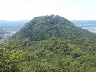 一方、尾根を東方に進んで行ったところのピーク部が錐山城の跡である。錐山はかなり鋭い山稜で、遠くから見ると尖って見えるので「錐山(きりやま)」という名称になったものであろう。