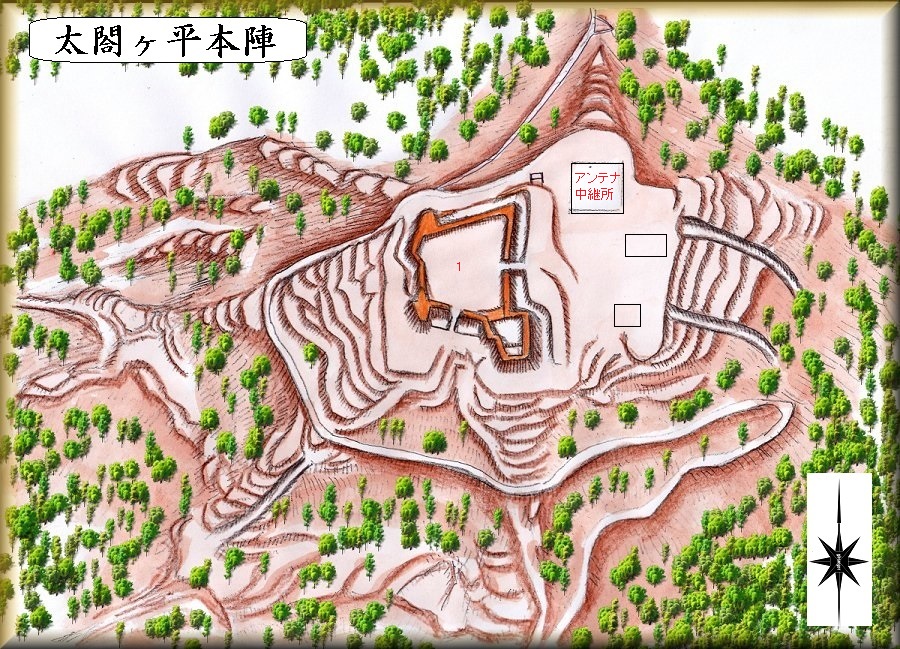 太閤ヶ平本陣の東側には無線中継所のような施設がある。かつて見た図では「マイクロウェーブ中継所」となっていた。この部分は改変されていると思われるが、陣の一部だったのであろう。