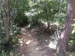 車道は尾根伝いに続いて行き、その先には的場の陣がある。