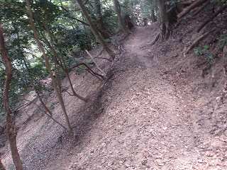 羽柴秀長陣へと続く道。側面部は急斜面である。 | |
