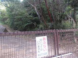 陣城のすぐ真下には水道施設があるのでアクセスも容易なのに違いない!と思って現地まで行ってみたのだが・・・・水道施設の入口の所には「あぶない! はいってはいけません」と書かれた看板が貼り付けられてあった。