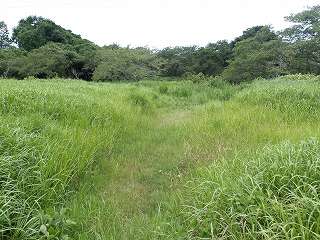 台場の土塁は、東西の両端部分は取り払われてしまったようだが、中央部分だけが一直線の土塁となって残されている。