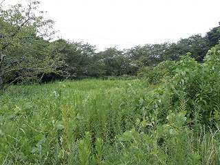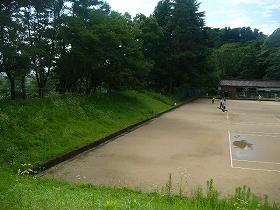 北側の下にある内膳丸。石垣によって2段に区画されている。 | 山麓のグランド。この上が三之丸であったろう。 |