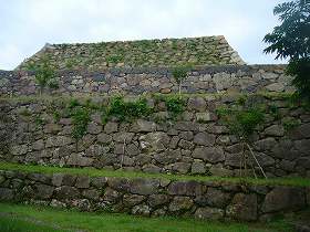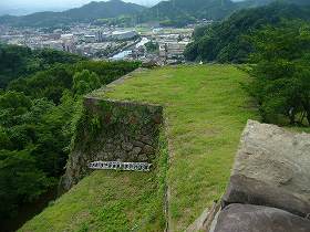 本丸は西側にも櫓門があり、下の段に接続している。下の段の先にも櫓門(水の手御門)があったようだ。また下の段の脇から、本丸の石垣の裾を通っていくと、遠見櫓跡に出る。ここから天守台側面の石段を降りていくと、最初に入ってきた本丸入口の枡形の所に出た。