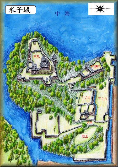『日本城郭体系』の解説によると、米子城は不遇の城と呼ばれているという。その理由は、この城に関して悲惨な出来事が多かったからだというが、騒乱の的となった城というのはだいたい、そんなものではないかと思うし、それはこの城にかぎったことではないであろう。 米子城は出雲と伯耆の国境近くにあるため、応仁年間から争奪戦が行われていたという。詳しいことは分からないが、米子城はこの頃に築かれたものであろうか。 大永4年(1524)、大永の五月崩れという事件が起こった。これは尼子経久の伯耆侵攻によって、伯耆の諸城が次々と落城し、多くの人々が戦死し、悲惨な目にあった事件のことをいう。この話は『伯耆民談記』にあるもので、従来定説のようになっていたが、近年ではその内容が見直され、伯耆侵攻は段階的に行われたものであり、巷説にあるがごとく悲惨な出来事ではなかったのではないかといわれるようになってきた。 永禄年間になり、尼子氏の勢力が衰えると、米子城は毛利氏に支配されるようになり、福原氏らが城代となっている。永禄12年(1569)、山中鹿介らが尼子再興の兵を挙げると、尼子軍はまず米子城を攻めた。この時、城将の福原元秀は、討ち死にを遂げてしまう。しかし、毛利氏の反撃もすさまじく、結局、山中鹿介らは、最後は播磨上月城に押し込められて落城、尼子再興は失敗に終わる。 それからの米子城は毛利方の吉川広家に支配されるようになる。天正16年(1587)、月山富田城を居城としていた吉川広家は、居城を平野部に移すことを決め、米子に新城を築く計画を立てた。それまでの米子城は飯山のいわゆる古城にあったというが、広家は城の中心を湊山に移すことにした。そうして広家は築城計画を進めたのだが、その後すぐに、小田原の北条攻め、朝鮮の役などへの出陣が続いたため、工事はなかなか進まなかった。それでもこの間に本丸に四重の天守を建てたという。 慶長3年(1598)、朝鮮の役から帰国した吉川広家は、再び、米子城の工事を再開するが、完成する前に関ヶ原合戦が起こってしまう。この合戦で毛利氏は西軍に加担したため、毛利氏は長門・周防の二カ国に押し込められてしまう。吉川広家も米子を去り、岩国5万石に転封していった。 代わって伯耆18万石に封ぜられたのは、豊臣家の三中老の一人であった中村一氏の子息、一忠であった。一忠は当時12歳という幼さであったので、家老の横田内膳が執政となった。慶長6年(1601)に入城した中村氏は「前領主吉川氏、当城の経営未だ果たさざるに因て、暫らく尾高に在て後、それを興し石垣を築いて、隍(ほり)を掘りて海水を通して本丸を修理、入城せり」(『伯耆志』)という。大天守を建て、最終的に米子城を完成させたのは、この中村氏の時代である。 慶長14年(1609)、中村一忠は、日野川に狩りに出かけ、そこで梅を食べたのだが、それにあたってしまった。そのことがきっかけとなって、一忠はわずか二十歳という若さで急死してしまう。一忠には嗣子がなかったため、中村氏はこれで断絶となった。 その後米子には加藤貞泰が入城する。加藤氏はその後、大坂の陣で戦功を立てたため、元和3年(1617)、伊予大洲に転封となる。 代わって、姫路城主であった池田光政が、因幡・伯耆32万石の太守として入城してくる。光政は鳥取城を居城としたので、米子城には城代として重臣の池田由之を入れた。 寛永9年(1632)、因幡と備前の国替えにより、池田光政は岡山城に移り、鳥取城には池田光仲が入城した。米子城代には、家臣の荒尾成利が1万5千石で入り、以後は荒尾氏の支配が明治まで続いた。 |