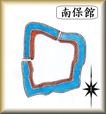 南保館は、北陸自動車道旭ICの東方400mほどのところにあった平城である。かつては土塁を堀を巡らせていた城館であったが、耕地整理と宅地化のために、現在では遺構を見ることができなくなってしまっている。「城の下」「城の脇」「堀上」「堀下」などの小字名が残されているのみである。